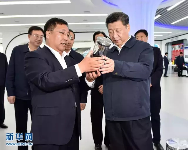 2016年5月25日上午,習近平在哈爾濱科技創新創業大廈察看石墨烯高新技術成果展示。 新華社記者 李濤 攝