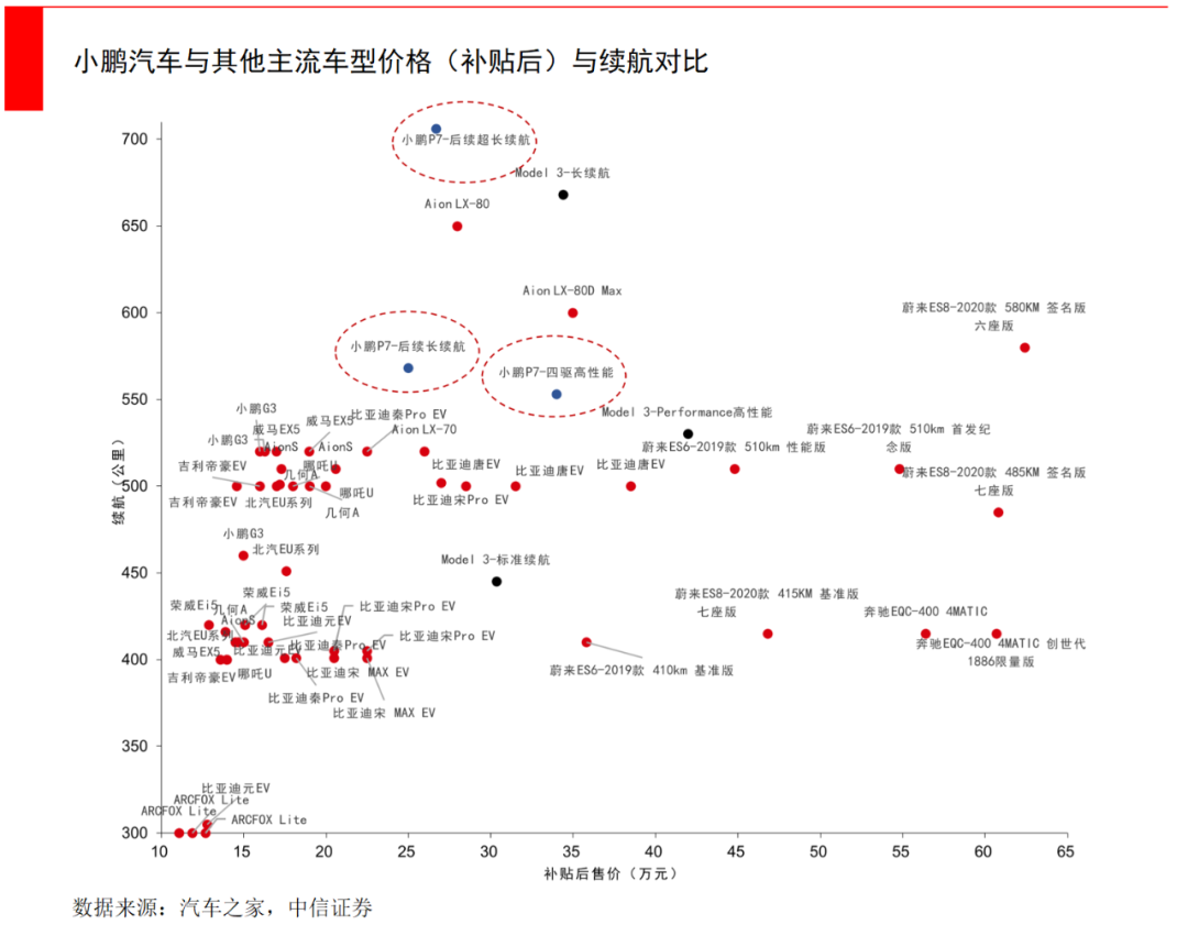 小鵬的定位就是這么清晰,它可能并不奢華,但針對的就是高性價比市場,它的定價整體低于特斯拉、蔚來和理想,產品力體現在續航和智能上,P7是目前續航里程最高的純電量產車型之一。
