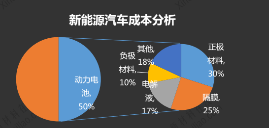 電動汽車中,鋰電成本占比最大,接近一半,而鋰電成本中,又以正極材料的價值量占比最大。