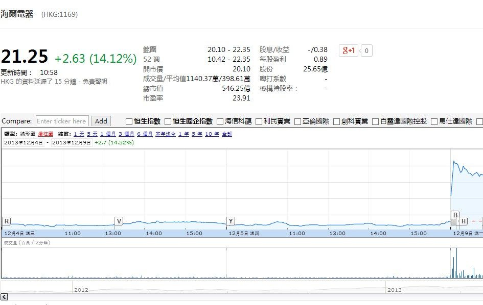 受此消息推動,海爾股價今天在港交所早盤交易中飆升20%至22.35港元,為自2000年2月以來的新高,超過了大盤恒生指數0.7%的漲幅。今年為止,海爾股價已經上漲了95%。