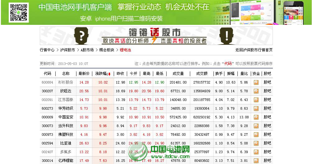 【本網(wǎng)訊】受消息面刺激,今天鋰電板塊放量上攻,截止到上午10:10,欣旺達(dá)、江蘇國(guó)泰、華芳紡織、當(dāng)升科技、佛塑科技、多氟多等股票漲停,新宙邦、凱恩股份、西藏城投、比亞迪、天齊鋰業(yè)、贛鋒鋰業(yè)漲幅超過8%。中國(guó)電池網(wǎng)-中國(guó)電池雜志分析師認(rèn)為,主要是因?yàn)樽蛉肇?cái)政部、工信部四部委已達(dá)成共識(shí),上半年將出臺(tái)新能源汽車補(bǔ)貼政策。據(jù)中國(guó)汽車工業(yè)協(xié)會(huì)相關(guān)負(fù)責(zé)人透露,相關(guān)部委正在積極研究,補(bǔ)貼政策應(yīng)該很快出臺(tái)。受此利好刺激,二級(jí)市場(chǎng)普遍認(rèn)為,新能源汽車的動(dòng)力電池及材料將因此受益。