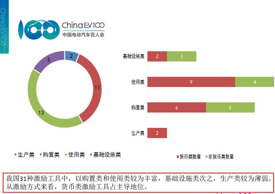 報告中提到,目前國內(nèi)外主要通過貨幣類激勵推動新能源汽車的發(fā)展;且激勵工具主要集中在購置和使用環(huán)節(jié),在生產(chǎn)研發(fā)以及基礎(chǔ)設(shè)施方面的激勵工具種類相對較少。同時,從市場驅(qū)動的角度上講,新能源汽車前期市場較小,政府大力促進新能源汽車的銷售,并完善車輛使用環(huán)境,將反過來推動企業(yè)的生產(chǎn)研發(fā),從這個角度上講,目前大量的工具集中于車輛的購置和使用階段,符合新能源汽車推廣應(yīng)用的階段性需求。但是,新能源汽車的推廣使用,必須依靠更為完善的充換電基礎(chǔ)設(shè)施的布局,而目前從全球看,在基礎(chǔ)設(shè)施建設(shè)運營上的激勵工具相對于車輛端的激勵,靈活性還不夠。