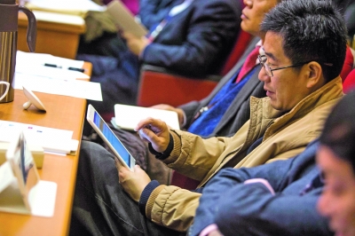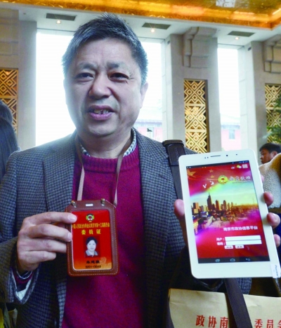揚子晚報記者看到,這臺國產品牌的平板電腦現場將存儲卡安裝后,便可以使用了。“輸入你的委員證號,就可以登錄了。”工作人員說,和會議相關的所有文件都可以下載,而且提案的提交也是通過它完成。“以前都是一大堆資料,不好保存,確實很浪費。”他表示,現在查閱資料方便了。