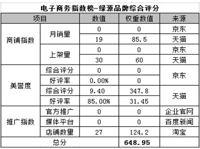 電商指數(shù)榜排名第二:綠源