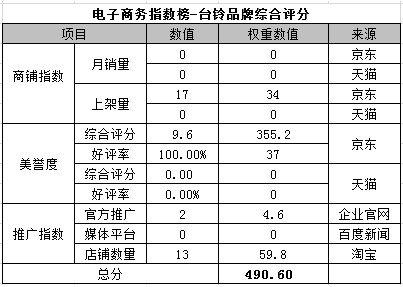 電商指數(shù)榜排名第八:臺鈴