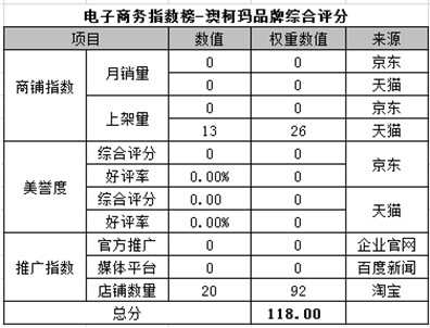 電商指數(shù)榜排名第十二:澳柯瑪
