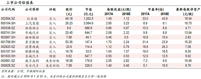 中銀證券認為,政策鼓勵汽車更新需求,有望推動汽車銷量逐步回暖。公安部最新統計數據顯示,截至2018年底全國汽車保有量達2.4億輛,比2017年增加2285萬輛,增長10.51%。考慮到一般汽車使用周期10~15年,每年的存量更新市場高達1600~2400萬輛。目前整車企業主動去庫存,鼓勵老舊汽車報廢更新等政策有望刺激更新需求,推動汽車銷量逐步回暖。