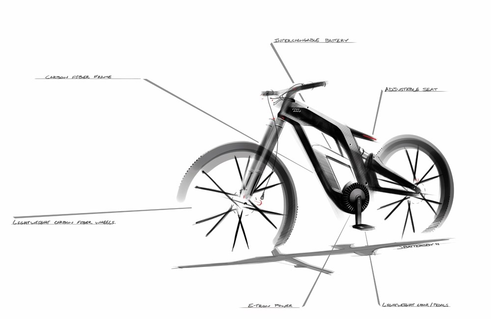 Wrthersee的車架裝有LED燈,可形成奧迪特有的“光影簽字”圖案。如果想表演高難度動作,用戶可以降低車座高度,與車架齊平。只需按一下按鈕,車座便可提升高度,供騎行者選擇一個舒適的姿勢。騎行模式和其他功能均可利用車載觸摸屏電腦控制。慕尼黑概念設(shè)計工作室設(shè)計師亨德里克-斯查菲斯表示:“在設(shè)計Wrthersee時,我們遵循了賽車的設(shè)計原則。這款電動自行車擁有非常有色的性能。在設(shè)計上,我們力求將其打造成一個運動機器,而不是一輛普通的自行車。”