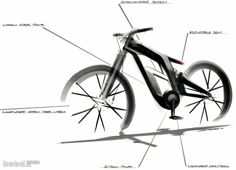 據(jù)國外媒體報道,奧迪公司打造了一款電動概念自行車,名為“Wrthersee”,時速可達到50英里(約合每小時80公里)。這款電動自行車遵循賽車的設(shè)計原則,擁有自行車迷能夠想到的一切功能,堪稱自行車家族的F1。