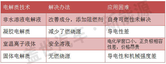電解質的技術突破往往帶來電池發展的革命。鋅錳電池發展歷史上有三次革命,兩次革命源來自電解質的技術突破,提高電池的放電性能和比能量。當前鋰電池安全是一個問題,解決燃燒問題的電解液有如下幾個市場技術方向。