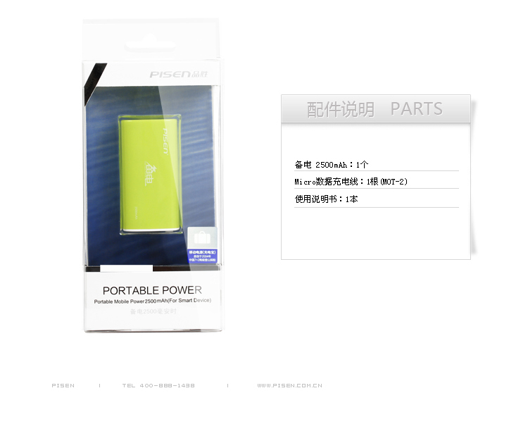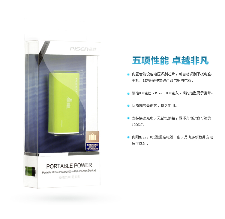 品勝移動(dòng)電源 備電2500mAh(陽(yáng)光青)
