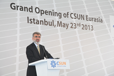 土耳其能源部部長Taner Yildiz 在演講中指出了在當地建立光伏企業對與土耳其能源發展的重要性。他熱烈祝賀CSUN土耳其工廠的開張,希望土耳其工廠能夠進一步得到獲取投資人的投資及更好的補貼。