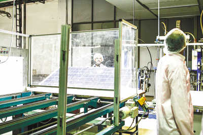 圖為Tata Power Solar Systems位于印度班加羅爾的一處太陽(yáng)能電池板加工廠。
