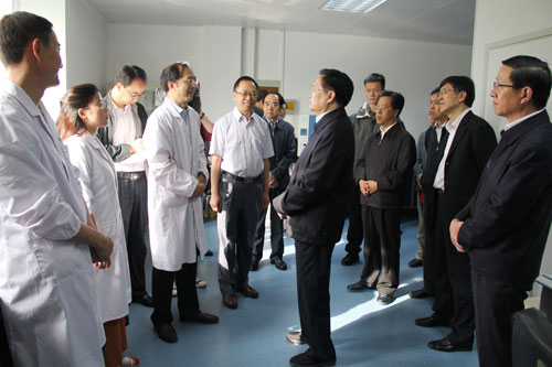 在參觀鹽湖化學(xué)分析測試中心時,王國生和機(jī)組人員握手談心,詢問他們的工作和生活情況,鼓勵年青人在各自的工作崗位上發(fā)揮生力軍作用,為我國鹽湖科技事業(yè)和經(jīng)濟(jì)社會發(fā)展添磚加瓦。