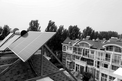北京家庭光伏發(fā)電第一人任凱在自家屋頂安裝的光伏發(fā)電裝置。本版圖片京華時(shí)報(bào)記者蒲東峰攝