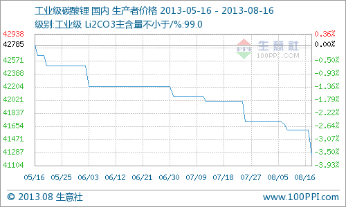 據生意社大宗榜監測數據顯示,本周工業級碳酸鋰出廠均價42000元/噸,與上周持平。近期國內市場碳酸鋰的價格持續走穩。