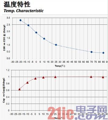 下圖所示為村田的EDLC在不同溫度下ESR和容量的變化特性。