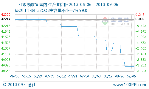 國內碳酸鋰行業在上月底做出小幅調整后,本周碳酸鋰價格全線持平。就目前資訊中處于熱議的特斯拉電動車預訂和環保政策出臺,國內工業級碳酸鋰市場反應平淡,部分廠家表示其或有小幅增加產量,但碳酸鋰訂單多以長單為主,故未至于改變價格。可此概念對股市影響頗大,許多與鋰電有關的上市公司股價均有所上揚。