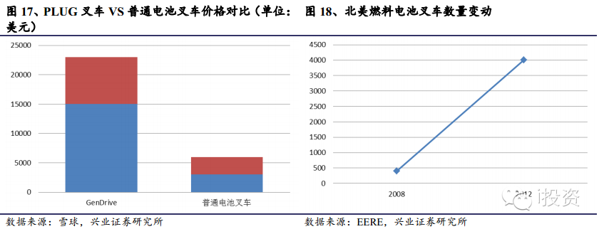 高效環(huán)保低成本的氫燃料電池叉車為運(yùn)輸領(lǐng)域的核心應(yīng)用。叉車是工業(yè)搬運(yùn)車輛,是指對成件托盤貨物進(jìn)行裝卸、堆垛和短距離運(yùn)輸作業(yè)的各種輪式搬運(yùn)車輛,是物料搬運(yùn)設(shè)備的一種。目前,叉車是交通運(yùn)輸領(lǐng)域中實(shí)現(xiàn)商業(yè)化較為活躍的主要品種。其主要生產(chǎn)商為Plug power公司。