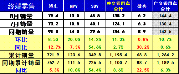 在外部劇烈變化的環境中,很多車企采取“促零售、降庫存”的措施,導致零售量高于國內批發4萬臺,批發高于生產8萬臺的全面降庫存減壓的特色。為提升零售,部分品牌強力降價并調整產品競爭定位、終端促銷也是幅度加大,推動車市負增長調整期的市場相對平穩度過,其中8月日系零售同比增14%,自主品牌同比增12%,都表現較突出。