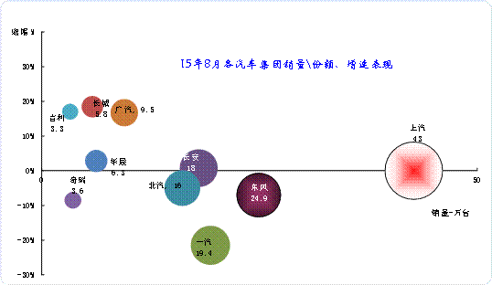 8月的汽車大集團也是表現(xiàn)分化,且自主中小集團相對超強。由于14年8月的輕卡暴跌帶來的自主偏弱,在基數(shù)走低后的獨立車企今年8月相對較強,廣汽、江淮、吉利等是表現(xiàn)很好的。