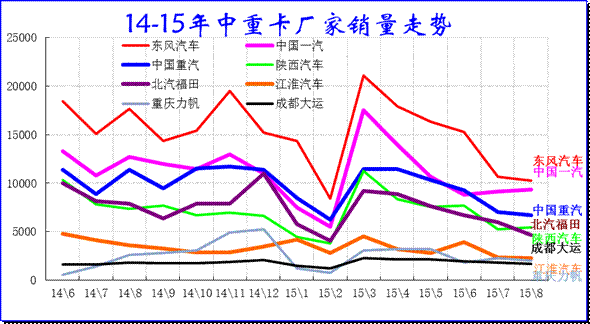 由于15年政府審批效率下降,項目審批而不開工的較多,上半年的中重卡屬于休眠期,目前經(jīng)濟(jì)也極度不景氣,各家3-8月銷售的表現(xiàn)均很差。