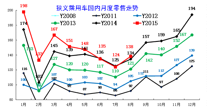 15年8月零售達(dá)到138萬臺,較2014年8月增長4萬臺,近幾個月增量有探底回升態(tài)勢,且8月的環(huán)比增14萬臺,這樣的6-8月與歷史重疊的現(xiàn)象是歷年沒有的。