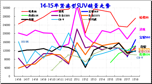 圖表 31緊湊型SUV主力車型市場(chǎng)走勢(shì)