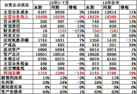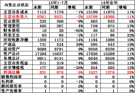 15年1-7月內資企業的收入和成本均負增長,利潤同比下滑5%。內資企業的增值稅繳稅大幅減少25%,體現了商用車企業的走勢偏弱。
