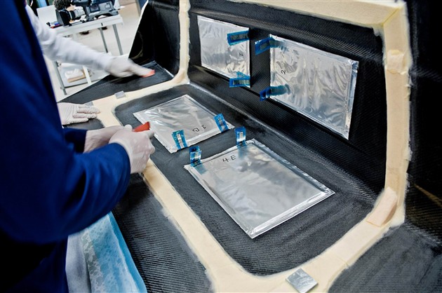 首先把碳纖維材料制成薄片,然后成型,烘干,硬化,再把超級電容植入其間,就做好了。可以通過疊加的方式,將其做成電池模塊,并做成車身面板的樣子,布置在車身框架之上。這種新型電池面板可以取代車門、后備廂蓋、發(fā)動機(jī)罩、車頂?shù)取?