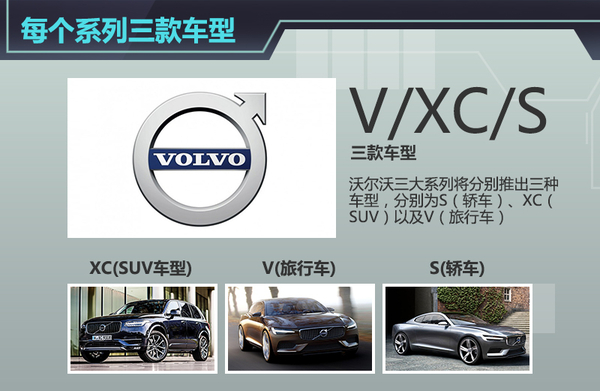 在車型方面,網通社從沃爾沃官方獲悉:未來旗下產品線將形成以40、60和90系列三大體系,每個系列將推出S(轎車)、XC(SUV)以及V(旅行車),基于兩大模塊化架構沃爾將推出9款新產品,除已推出的全新XC90之外,接下來沃爾沃還有8款新車型將陸續推出。在全部新車推出的同時,沃爾沃還將全系產品推出電動化車型,將包含插電混動車、電動車等等。