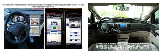 圖1 特斯來Model S和比亞迪E6的互聯(lián)網(wǎng)技術(shù)應(yīng)用