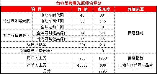 臺鈴在上期榜單中的表現成為行業矚目的焦點,而在11月份的榜單中,臺鈴的排名有所回落,這主要也是由于行業整體環境的影響。本期榜單其綜合評分的表現也不遑多讓,全國性媒體的曝光度提升明顯。
