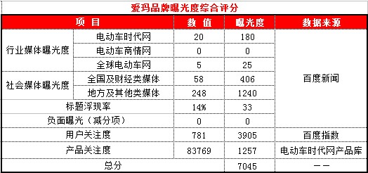 作為中國電動車市場的領導品牌,愛瑪電動車在11月份的數據統計中以7045分的品牌曝光度綜合評分穩坐頭把交椅,繼續領跑行業。這也是今年下半年以來,愛瑪第五次蟬聯口碑榜冠軍。