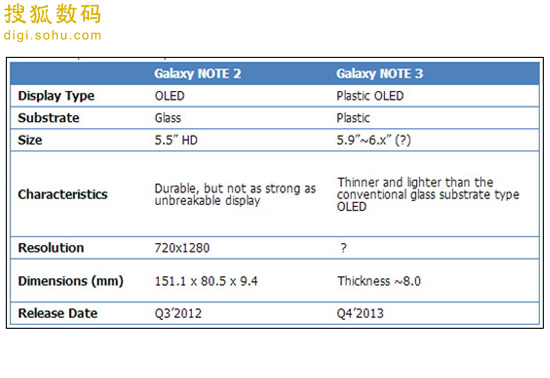 【搜狐數(shù)碼消息】4月23日消息,隨著三星新旗艦Galaxy S4的正式發(fā)布和上市,外界的期待現(xiàn)在都放在了三星下一代Galaxy Note巨屏手機(jī)身上。之前有傳聞表示,三星計(jì)劃為Note 3加入一塊6英寸巨屏。而日前又有報(bào)道稱,這款手機(jī)將配備世界首塊塑料OLED屏幕。對比目前使用玻璃面板的設(shè)備,塑料面板能讓設(shè)備的機(jī)