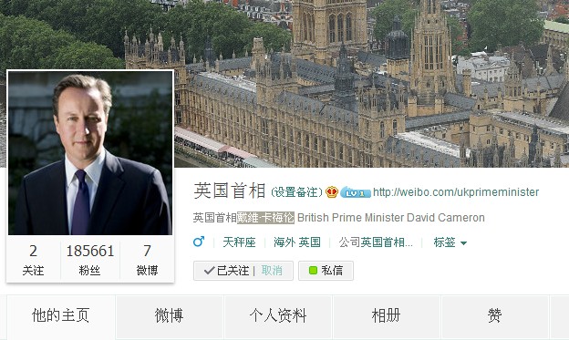 英國首相戴維·卡梅倫截止到3日9點一共發(fā)的7條微博: