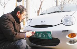 昨日10時許,邢臺市民趙樹安來到邢臺縣交警大隊車管所。不到10分鐘,他就從民警手中拿到了一張綠色的電動汽車專用號牌。趙樹安掩飾不住內心的激動?!拔翼憫栒?,上了牌照,開車