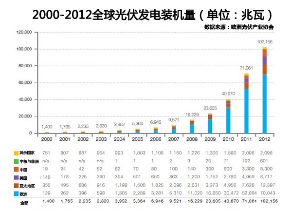 反觀中國,盡管國家推行了好幾年的光伏發電補貼政策,但是效果并不好。根據國家發改委能源研究所研究員王斯成的統計,太陽能發電在中國整個能源結構中依然微不足道,據統計,2012年中國太陽能發電量僅為35億千瓦時,僅占全國發電量的0.07%。