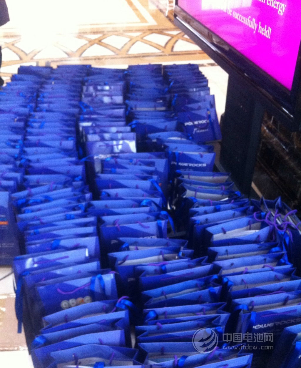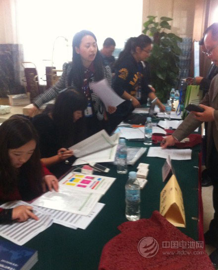 中國電池雜志-中國電池網11月11日訊(梁小婧報道) 參加中國(宜春)鋰電新能源產業國際高峰論壇(ABEC2013)的嘉賓陸續報道。 整齊的會議資料袋 報到臺 報道現場
