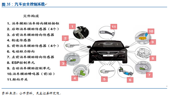 車身電子系統(tǒng):轉(zhuǎn)向控制、儀表儀盤、空調(diào)控制系統(tǒng)、汽車防盜系統(tǒng)、中控鎖等。