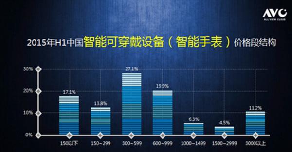 2015年H1中國智能可穿戴設備(智能手表)價格段結構