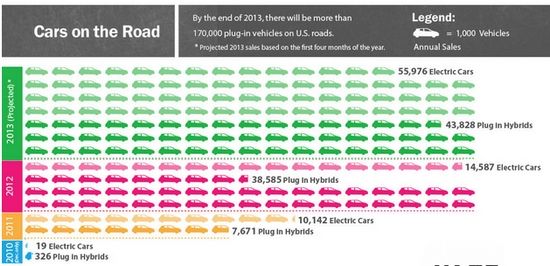 另外,Recargo根據(jù)今年前四個月全美電動汽車銷量預測,到2013年底,美國將有17萬輛電動汽車上路。盡管與傳統(tǒng)燃油汽車的數(shù)量相比不值一提,但相比2011年和2012年的電動汽車數(shù)量,這樣的增長速度非常迅猛,其中又以純電動汽車的增長最為顯著。