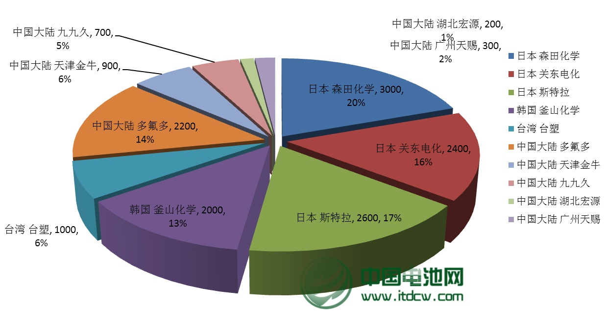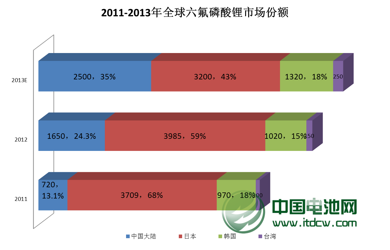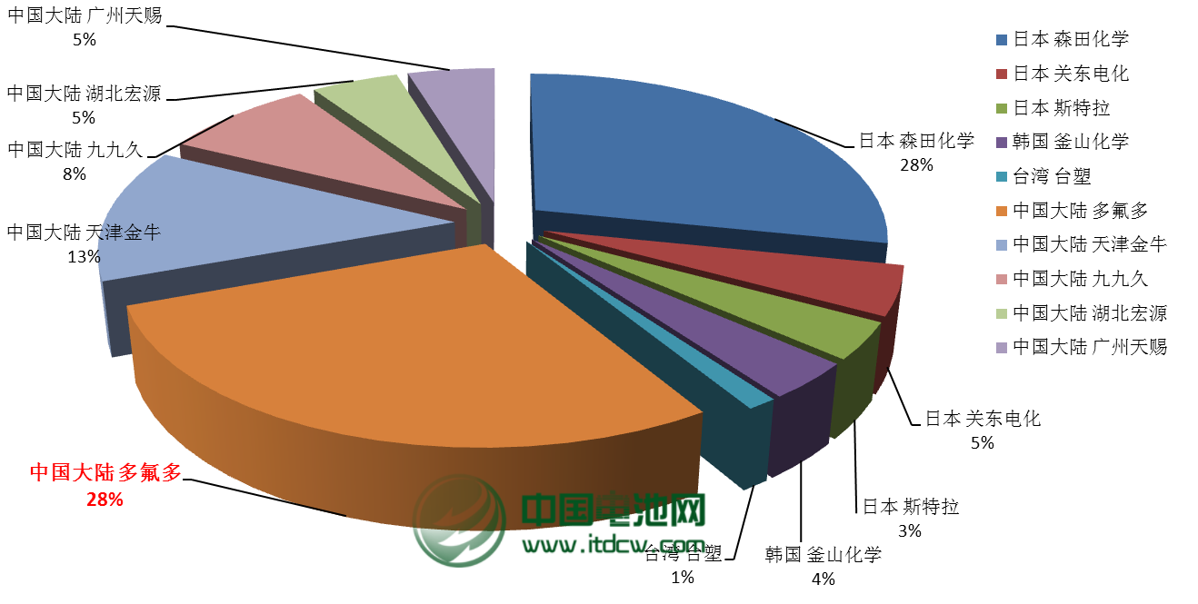 中國電池雜志-中國電池網12月10日訊(肖何 北京報道)近日,多氟多化工股份有限公司(以下稱“多氟多”)副總經理李云峰對中國電池網表示,六氟磷酸鋰行業(yè)正面臨著激烈的市場競爭和挑戰(zhàn),他表示,日韓及中國和中國臺灣占據了全球六氟磷酸鋰市場的絕大部分份額,其中日本的森田化學、關東電化、斯特拉等三家企業(yè)從2011年68.75%下降到今年10月的52.29%,而韓國的釜山化學相比有所提升,目前占全球份額的13.07%。而中國的多氟多、天津金牛、九九久、湖北宏源、廣州天賜等五家企業(yè)占據28.10%的市場份額,六氟磷酸鋰的國產化仍有提升空間。