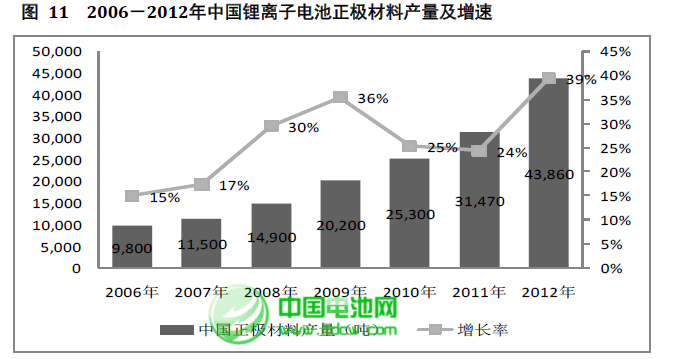 2009年以來,隨著鋰離子電池在動力電池領(lǐng)域應(yīng)用逐步成熟,其對傳統(tǒng)二次電池的替代作用也更加明顯,整個(gè)鋰離子電池正極材料的產(chǎn)業(yè)規(guī)模保持了較高的增長幅度。