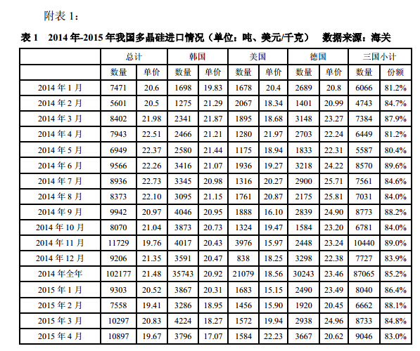 據海關統計數據顯示,2015年4月份我國多晶硅出口為770噸,環比大幅增加348%。
