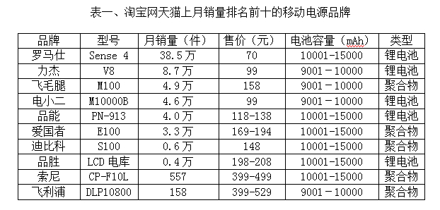 (數據來源:截至12月3日天貓上各移動電源品牌月銷量 大智慧通訊社 汪家紅統計)
