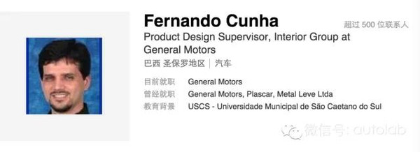 Fernando Cunha是前通用汽車的產(chǎn)品設(shè)計主管,主要負責(zé)汽車儀表盤、中控臺和車門飾件的設(shè)計工作。