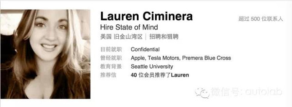 自己挖人還不夠,蘋果還要挖一個懂挖人的人來挖人。前不久,蘋果就前特斯拉的首席招聘員Lauren Ciminera給硬生生地挖過來了。