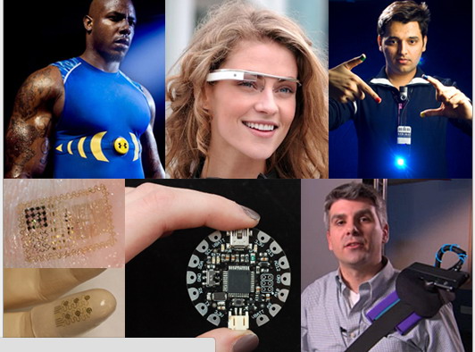 可穿戴設備產品潮水般充塞著市場。從谷歌、蘋果、RIM相繼發布的智能眼鏡系列產品,到Fitbit、Jaw bone、耐克相繼推出的智能腕帶,可穿戴計算逐步成為了IT界的熱詞。iwatch,可以給智能手機和其他小型電子產品充電的太陽能比基尼,隨行鍵盤牛仔褲,可以使聾人和盲人發送短信的移動框架手套,能更新Facebook狀態的社交牛仔褲,能在衣服上呈現任何圖案的內置電流回路K服飾,可以打電話的移動手套,電子鼓機T恤,樂器節拍手套,能通過行走的熱能給智能手機充電的充電鞋,對飲食和睡眠狀態進行跟蹤的智能腕帶……,可穿戴計算設備層出不窮,不斷豐富著新一代IT產品市場。