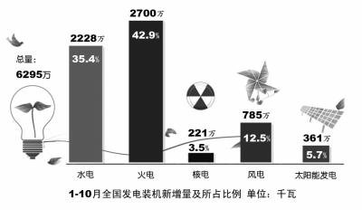 消息稱,1-10月,全國累計(jì)新增新能源和可再生能源發(fā)電裝機(jī)3595萬千瓦,為去年同期的2倍,占新增發(fā)電裝機(jī)57.1%,占比比去年同期提高19.5個(gè)百分點(diǎn)。